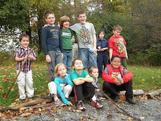 The first Sunday of October the cub scouts had a family hike at the Cazinovia Art Park. When it was time to load up the van and go it was sprinkling, but Randy and I decided we'd go anyway, even if we were the only family there. On the drive there it began to down pour! Neither of us were interested a hike in that, but we continued on. When we got there the clouds parted and the sun began to shine.To our surprise 4 other families came for the hike as well. Despite a little whining we had a good time. |